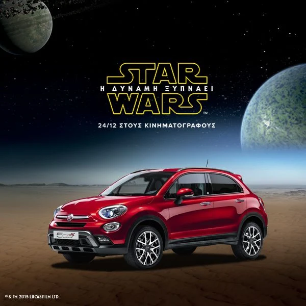 Η FCA συνεργάζεται ξανά με την Disney, την ιδιοκτήτρια της Lucasfilm, για το λανσάρισμα του έβδομου επεισοδίου της σειράς ταινιών Star Wars: "Η Δύναμη Ξυπνάει". Η πολυαναμενόμενη ταινία ξεκίνησε να προβάλλεται στην Ευρώπη από τις 16 Δεκεμβρίου και η Fiat έχει προγραμματίσει για το Δεκέμβριο την έναρξη των αποκλειστικών προωθητικών της ενεργειών "Star Offers", εξασφαλίζοντας εξαιρετικές συνθήκες για την αγορά ενός νέου οχήματος.
