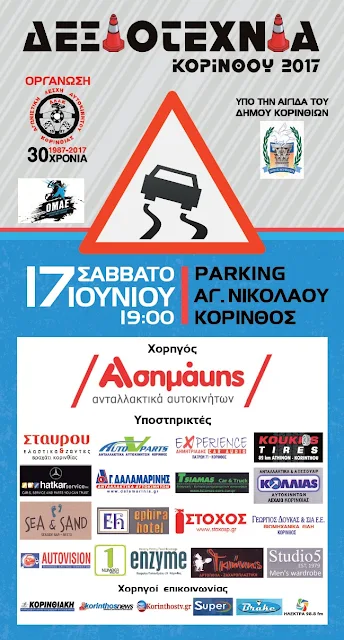 Η Δεξιοτεχνία θα πραγματοποιηθεί στο Parking Αγίου Νικολάου στην Κόρινθο, το απόγευμα του Σαββάτου 17 Ιουνίου στις 19:00, ενώ από το πρωί της ημέρας θα υπάρχει στην Πλατεία Ε. Βενιζέλου (Φλοίσβος), έκθεση-παρουσίαση των σύγχρονων αγωνιστικών καθώς και κλασικών οχημάτων των μελών του Σωματείου.