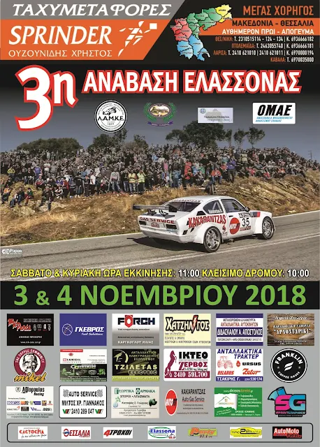 Ένας αγώνας αυτοκινήτων που κάθε χρόνο γίνεται και καλύτερος και κάθε χρόνο σπάει τα δικά του ρεκόρ, απέχει μόνο λίγες μέρες! Η 3η Ανάβαση Ελασσόνας, 5ος γύρος του Κυπέλλου Αναβάσεων Βορείου Ελλάδας, είναι προ των πυλών και η Λέσχη Αυτοκινήτου & Μοτοσικλέτας Καλλιθέας Ελασσόνας (ΛΑΜΚΕ), με την αρωγή της Περιφέρειας Θεσσαλίας και του Δήμου Ελασσόνας, είναι έτοιμη να προσφέρει μια διοργάνωση που θα αφήσει άπαντες ικανοποιημένους.