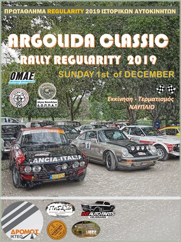 Η Αργολική Λέσχη Μηχανοκίνητου Αθλητισμού ΑΛΜΑ 4Χ4 Ναυπλίου με την υποστήριξη του ΔΟΠΠΑΤ του Δήμου Ναυπλιέων, διοργανώνει την Κυριακή 1 Δεκεμβρίου 2019 τον τελευταίο αγώνα κλασσικών αυτοκινήτων του Πανελληνίου Πρωταθλήματος της ΟΜΑΕ, το Argolida Classic Rally Regularity 2019. Η εκκίνηση και ο τερματισμός του αγώνα θα γίνουν στο Ναύπλιο, ενώ θα υπάρχει και μια στάση ανασυγκρότησης στην Παλαιά Επίδαυρο. Η Οργανωτική Επιτροπή της ΑΛΜΑ 4Χ4 Ναυπλίου, έχει σχεδιάσει την διαδρομή του αγώνα έτσι ώστε να προσφέρει στους συμμετέχοντες τη μέγιστη οδική απόλαυση - ενώ δεν θα λείψουν και κάποιες εκπλήξεις. Δικαίωμα συμμετοχής έχουν όποιοι είναι κάτοχοι διπλώματος οδήγησης, τα αυτοκίνητα τους έχουν άδεια κυκλοφορίας πριν την 31-12-1990 και να είναι συμμορφωμένα με τον Κ.Ο.Κ.